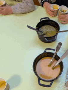Les enfants de l’école Saint Paul goûtent différentes soupes, purées et jus à l’occasion de la semaine du goût…